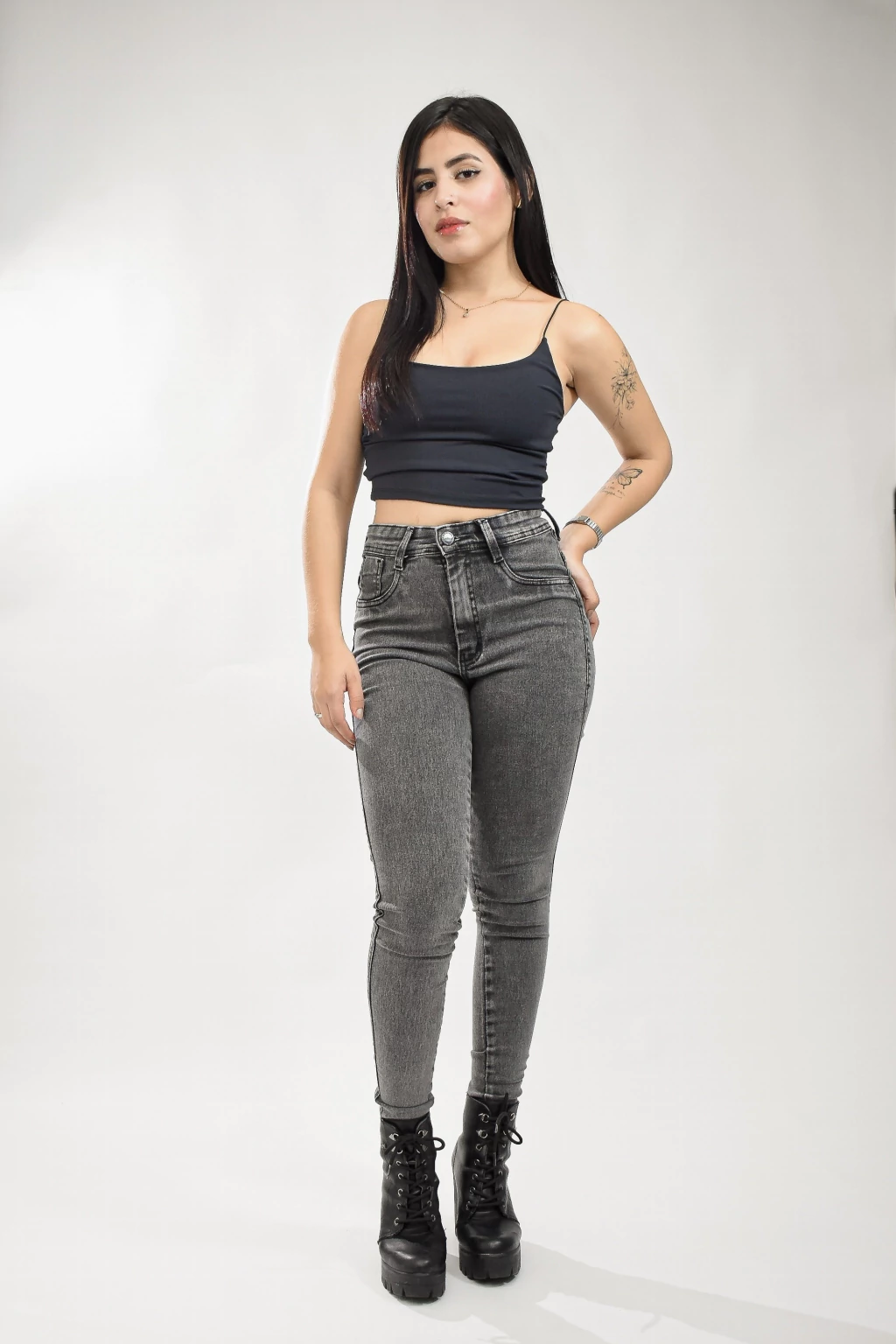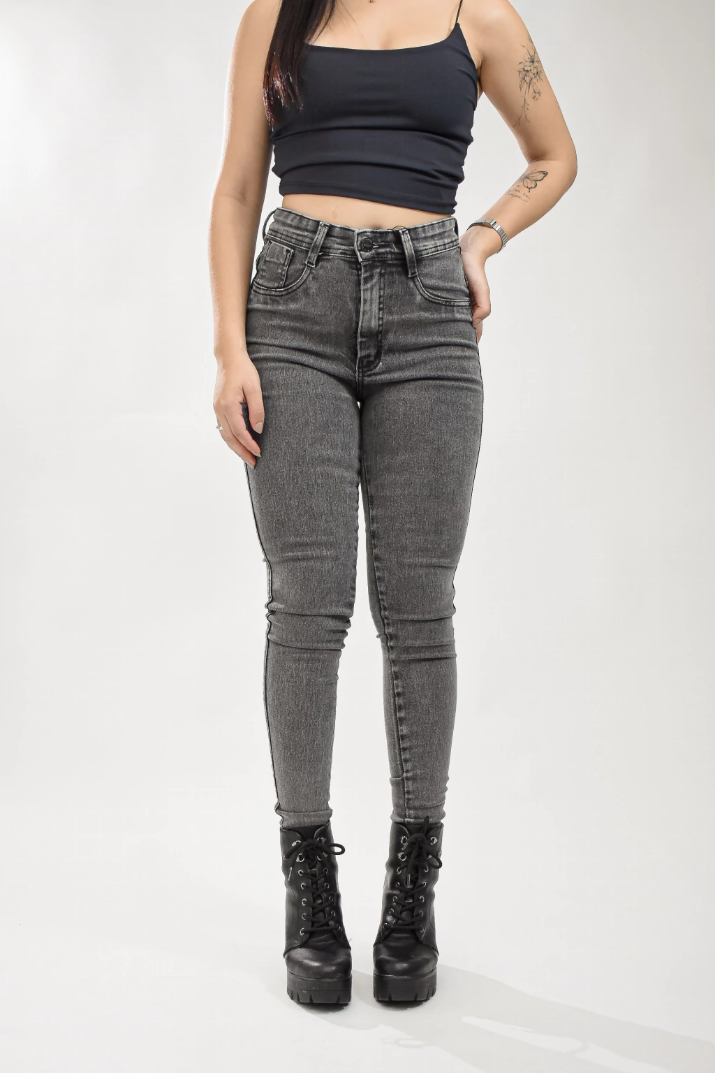 • A modelagem é colada no corpo, mas com jeans que tem lycra e veste como uma luva. A lavagem grafite deixa o visual moderno e super fácil de combinar. Com bolsos atrás e caimento impecável, ela é aquela peça que salva qualquer look.