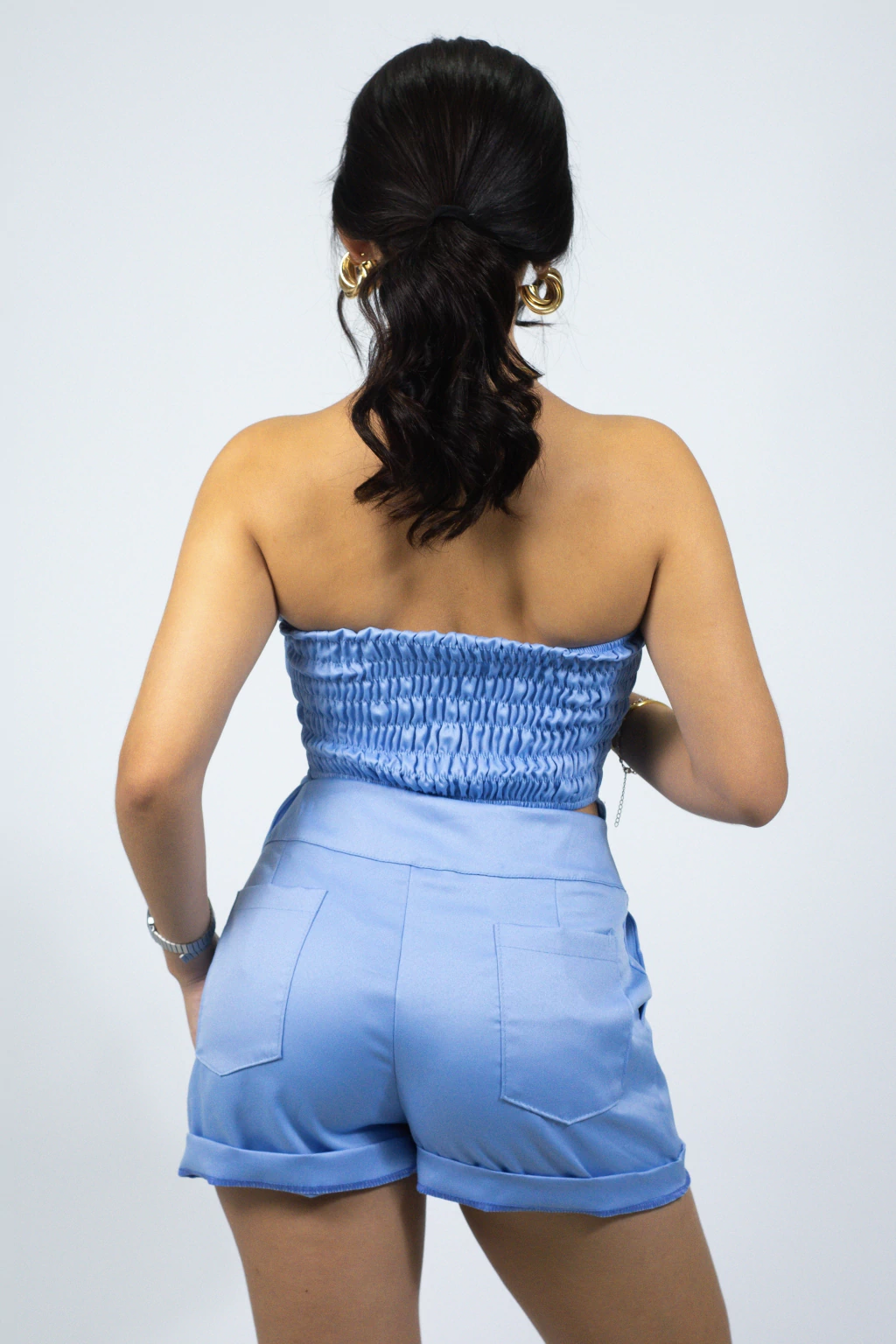 O Conjunto Cíntia é a escolha ideal para quem busca praticidade sem abrir mão de um visual moderno e sofisticado. Composto por um cropped e um short com bolso, este conjunto é perfeito para quem adora peças versáteis que combinam conforto e estilo. Confeccionado em tecido oxford, ele proporciona frescor e leveza, com um cropped que possui caimento fluido na parte inferior de um dos lados, criando um movimento elegante. O bojo e o elástico nas costas garantem sustentação e um ajuste perfeito.