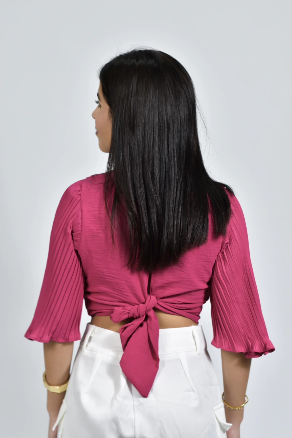O Cropped Alana é a opção perfeita para quem busca um visual moderno, confortável e cheio de estilo. Confeccionado em tecido duna, esse cropped é leve e fresquinho, ideal para os dias mais quentes. Com bojo embutido, ele proporciona sustentação e modela o busto, enquanto o decote em V e a amarração nas costas trazem um toque sensual e elegante. As mangas com detalhe fluido e frizado adicionam um charme extra, tornando a peça ainda mais única.