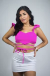 O Cropped Angel é a peça perfeita para quem busca um visual delicado, moderno e cheio de estilo. Confeccionado em tecido oxford, oferece um toque estruturado, mas ainda assim confortável, garantindo um ajuste impecável. Com bojo embutido, ele proporciona suporte e modela o busto de maneira sutil. A amarracão na cintura cria uma silhueta mais definida, enquanto o detalhe de babado nas mangas adicionam um toque romântico e feminino, tornando o cropped ainda mais especial. A modelagem colada ao corpo exalta suas curvas com muito charme, fazendo dessa peça uma escolha versátil e cheia de personalidade.
